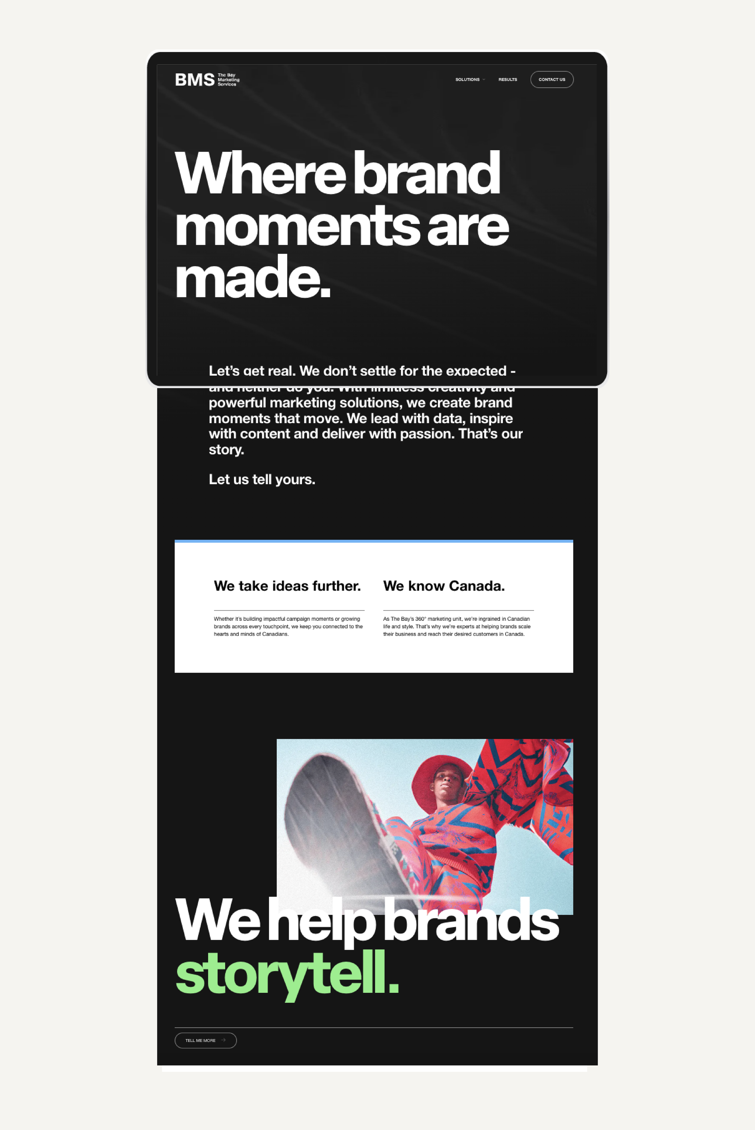 By adapting the renowned Hudson's Bay stripe colours and brand language, we crafted a captivating and elevated brand identity that could serve as our new digital-first platform designed to help brands scale and grow their business in Canada.