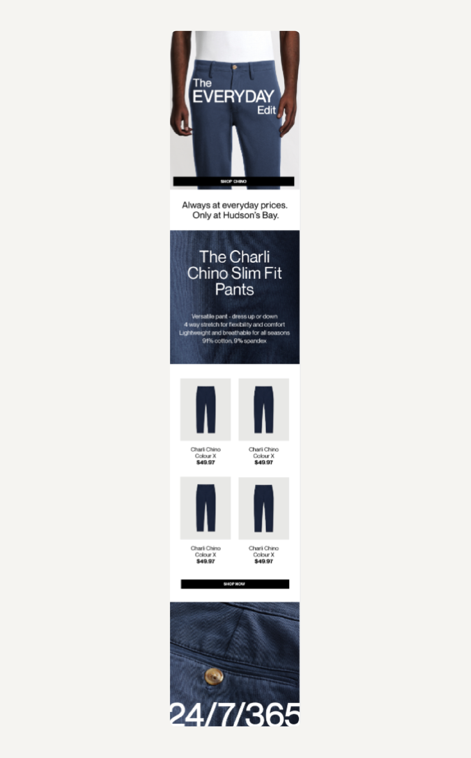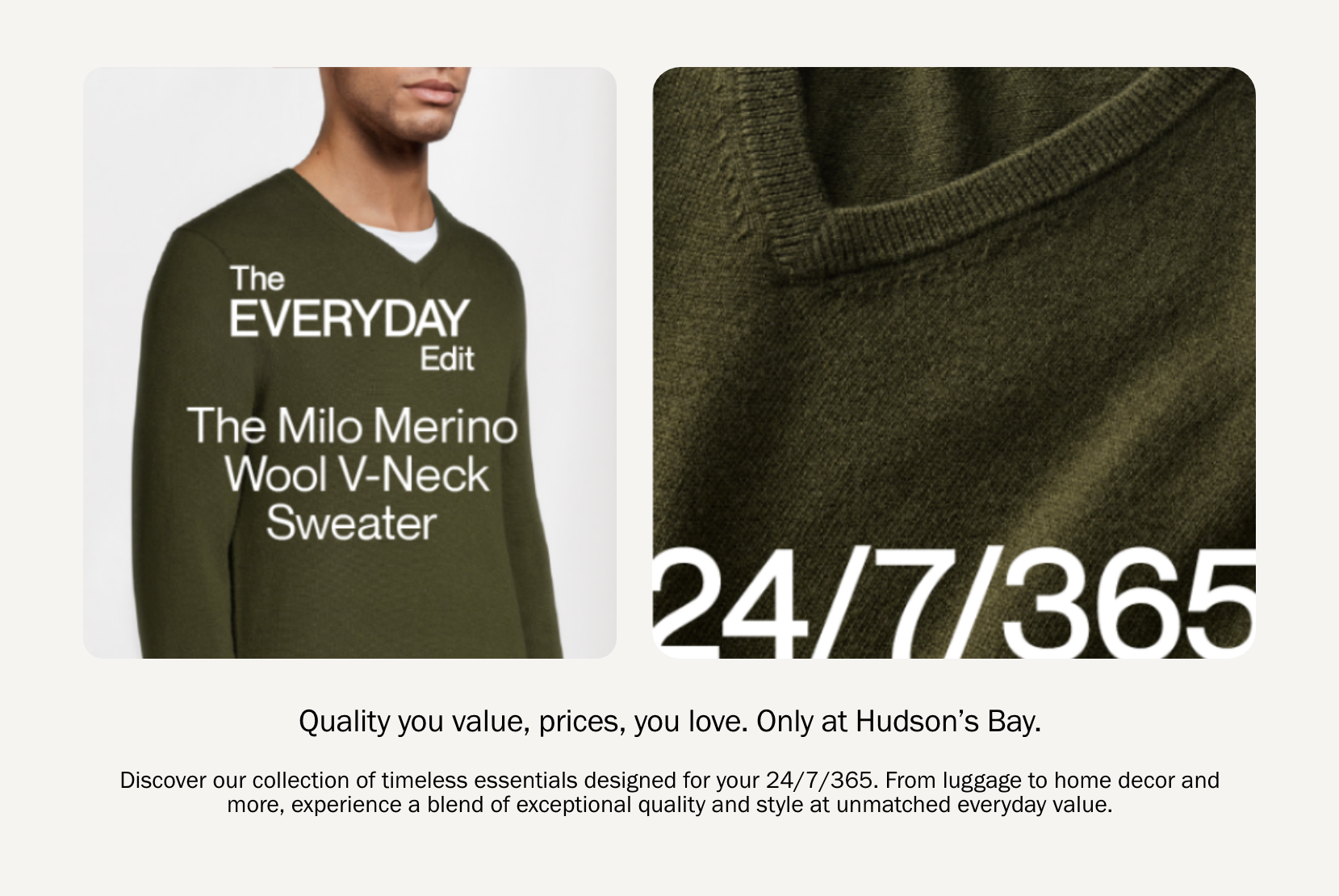 TAGLINE 2: Quality you trust, prices you love. Only at Hudson’s Bay.